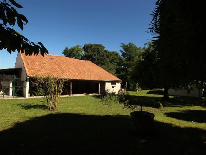 Le bâtiment dispose d'une belle hauteur sous plafond (6 m, au faitage), d'une grande place devant, pour parking, jardin, ainsi que deux petites dépendances.