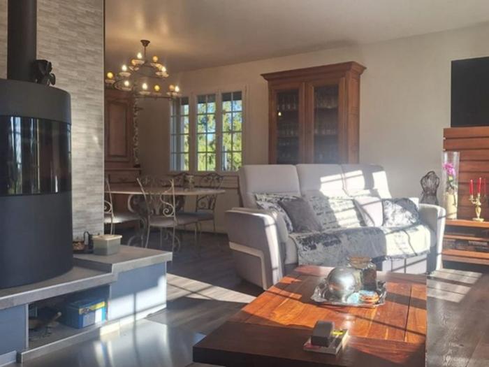 - Un grand salon séjour avec poêle à bois, et accès direct à la grande terrasse