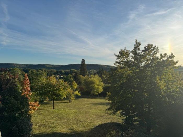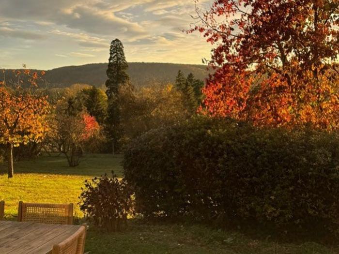 A l'extérieur, un grand terrain clos et arboré, avec arbres fruitiers, ainsi qu'une grande terrasse sans vis-à-vis exposée sud-ouest.