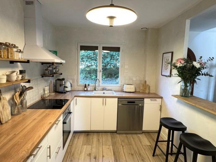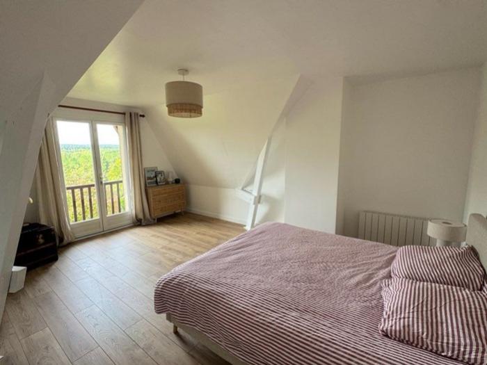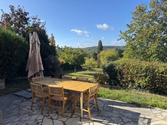 Clef Vallée d'Eure (27) : Particulier vend maison traditionnelle de 6 pièces (1990), située dans un cadre privilégié, au sein d'un charmant village, avec une jolie vue sur la vallée de l'Eure. Une propriété spacieuse, sur deux niveaux, d'une superficie de 169 m² (190 m² au sol), sur un vaste terrain de 2198 m² . Elle comporte :