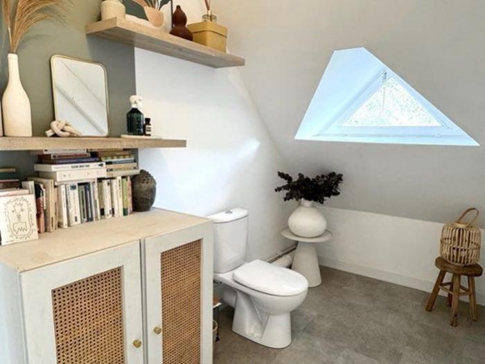 - Au rez-de-chaussée : Une entrée, un vaste salon/séjour lumineux de 45 m², une cuisine aménagée et équipée, 1 chambre, une salle d'eau et des WC indépendants.