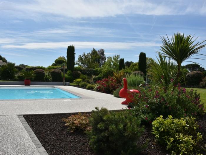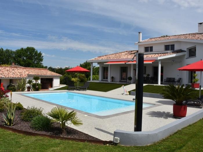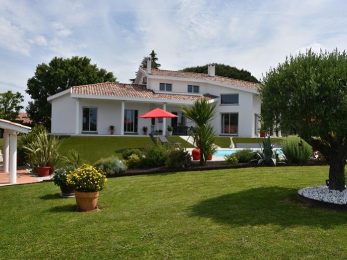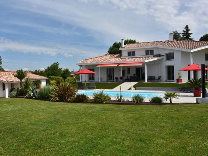 La maison dispose également d'un jardin, d'une piscine chauffée 9x4 rénovée en 2020, d'un terrain de pétanque, de 3 garages, d'un pool house atelier wc bar, et d'une cave en sous-sol.