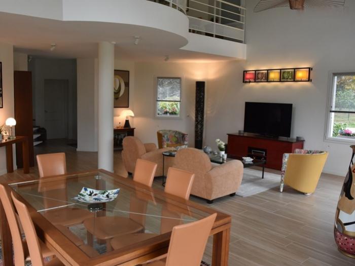 Un séjour de 50 m², une cuisine équipée de 18 m² +arrière-cuisine, 2 belles chambres +1 transformée en dressing, une salle bain (bain, douche double vasques wc) ainsi qu'une buanderie avec évier et un wc invité.