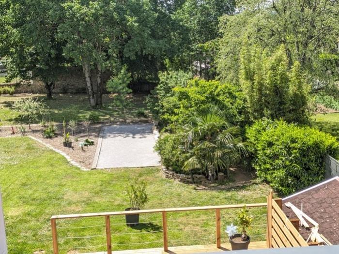 A l'extérieur, le jardin arboré et clôturé.