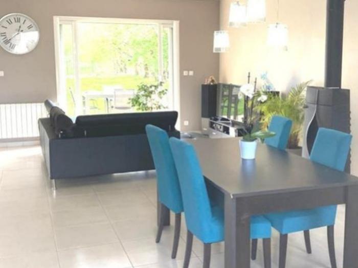 - Un magnifique salon séjour spacieux de 40 m² et lumineux avec poêle à bois, donnant sur une terrasse carrelée plein sud, avec une vue dégagée sur le jardin.