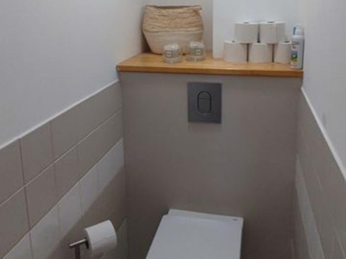 - A l'étage, 4 chambres, dont trois avec placards intégrés, une salle de bain rénovée, et des toilettes suspendus indépendants.