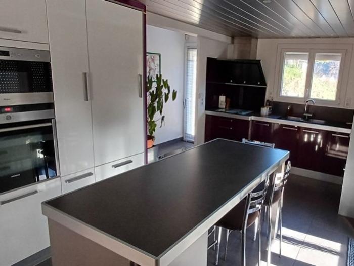 Mende (48) : (Rieucros) Particulier vend maison de 5 pièces, avec piscine, dépendances, dans un cadre de vie agréable, quartier Les Eglantiers - Le Roussel-Bas - Le Roussel-Haut - Les Hauts de la Bergerie. Une charmante propriété sur deux niveaux, construite en 1991, offrant une superficie de 123 m² habitables, sur une parcelle de 652 m². Elle comprend :