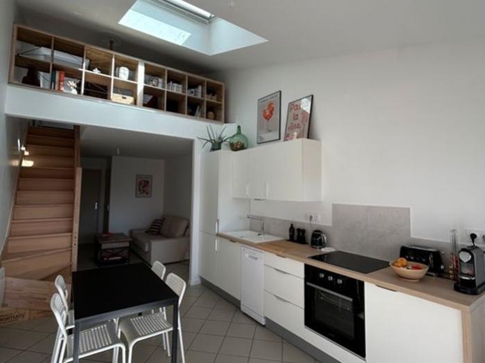- Une pièce de vie lumineuse avec cuisine ouverte récente et équipée
