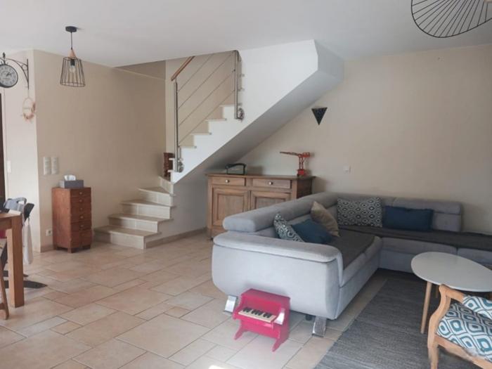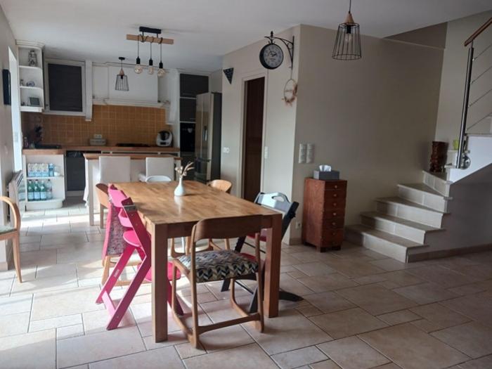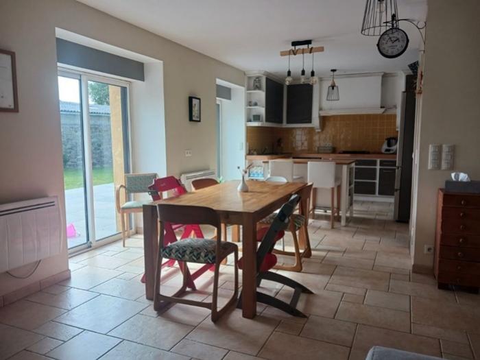 - Au rez-de-chaussée : Une grande pièce de vie avec cuisine ouverte, une arrière-cuisine, un salon et un WC avec lavabo.