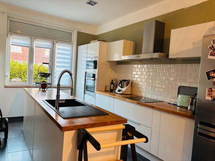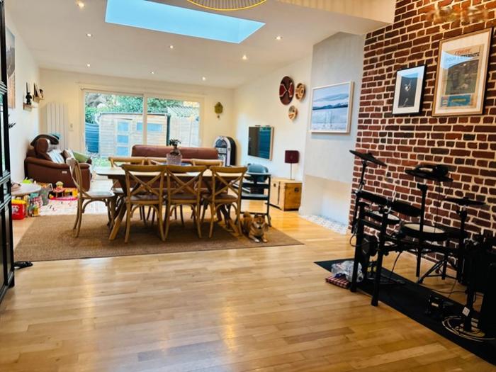 Templemars (59) : Particulier vend maison de ville de 4 pièces, entièrement rénovée, en parfait état, située dans un quartier calme et prisé, proche de la gare. Une propriété de 1930, sur 3 niveaux, offrant une superficie de 120 m², sur une parcelle de 150 m². Elle comprend :
