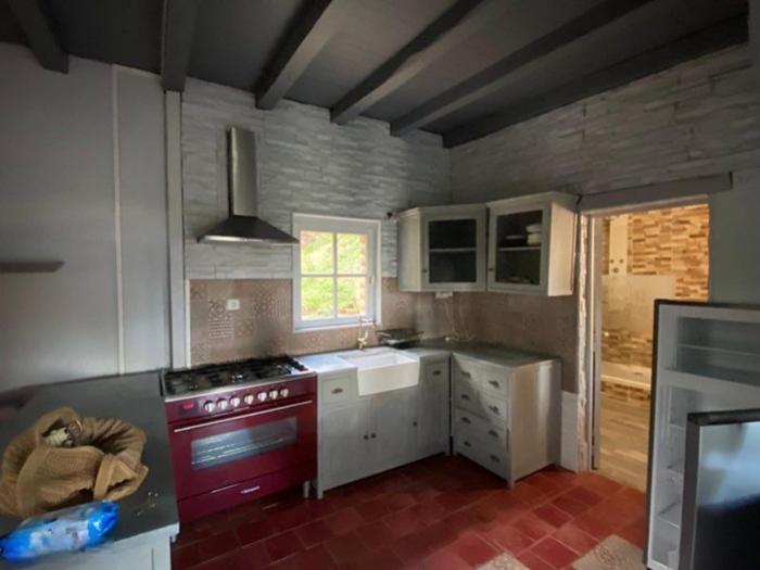 - Cuisine ouverte, entièrement équipée avec plan de travail en zinc et piano de cuisson