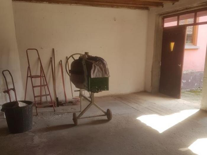 A l'extérieur, une grande cour privative fermée, un garage, un espace atelier, un abri ouvert, une cave en terre battue, et un petit jardin derrière la maison.