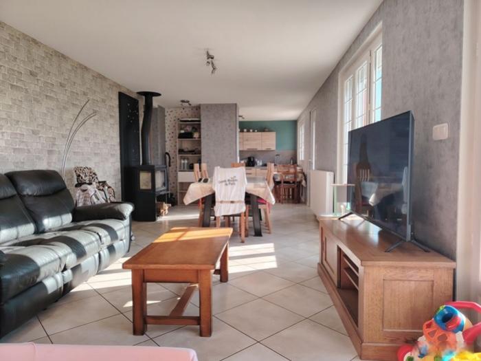 - Une vaste pièce de vie lumineuse réunissant cuisine équipée, salon et salle à manger,