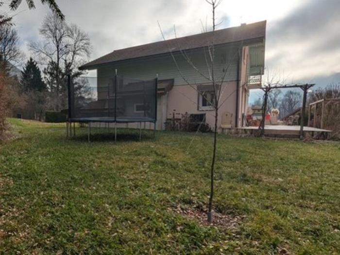 Faverges Seythenex (74) : Particulier vend maison individuelle F5, avec grand jardin, située quartier La Balmette, dans un environnement calme, bordée pour moitié, de champs, bois et ruisseau (hors période estivale). Une belle propriété, offrant une superficie de 110 m², implantée, sur un terrain plat de 942 m², complétée d'une parcelle de bois attenante de 410 m². Elle comprend :