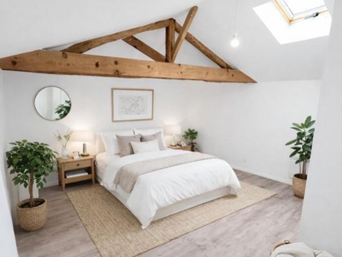 - Une belle pièce de vie lumineuse avec poutres apparentes