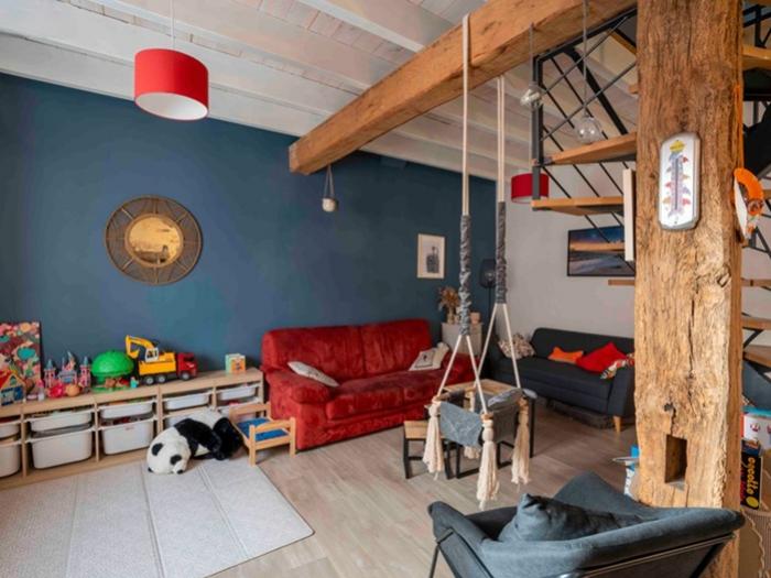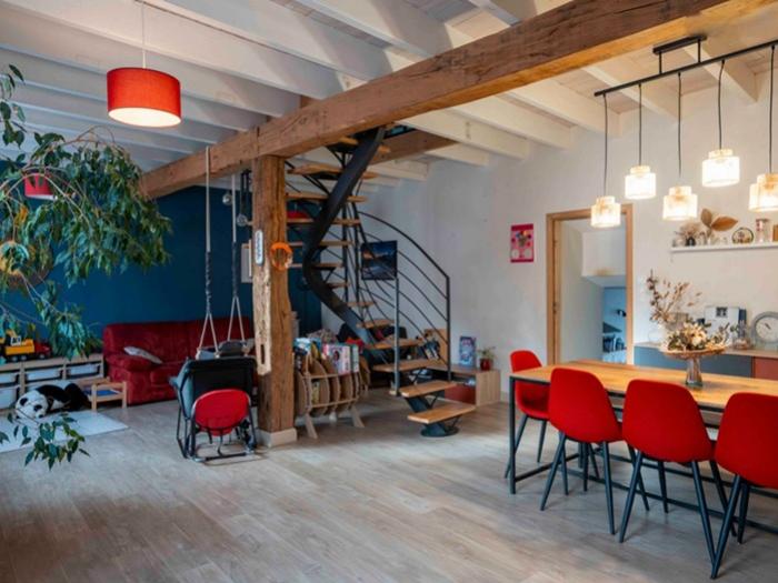 - Une grande pièce de vie de 45 m² avec poêle à bois.