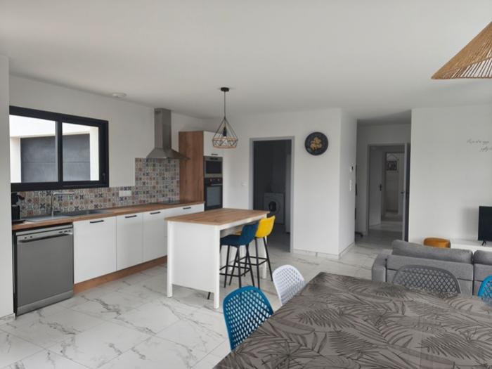 Saint Vincent sur Graon (85) : Particulier vend maison neuve BBC, F4 de plain-pied, avec garage et jardin, située dans un cadre calme près d’un lac. Une propriété d’une superficie de 93 m² habitables, sur une parcelle de 469 m². Elle comprend notamment :