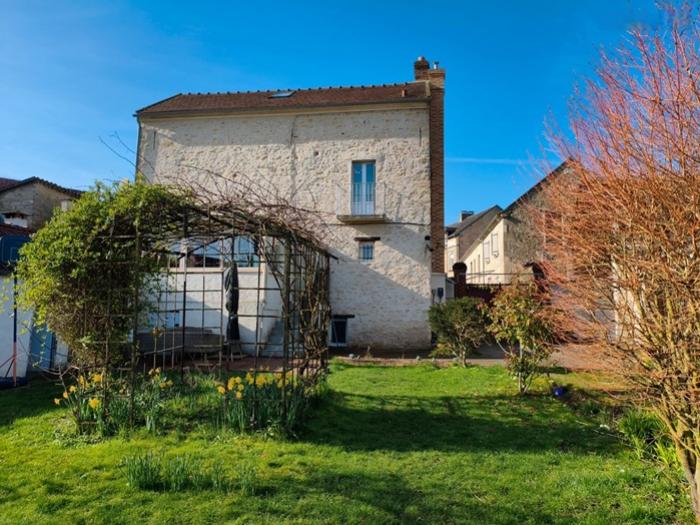 Saint Gervais (95) : Particulier vend propriété de caractère en pierre (1850), 5 pièces, avec dépendance, située dans le quartier Archemont, un environnement calme et verdoyant, à proximité des écoles et commerces. Une maison rénovée, aux beaux volumes, d’une superficie d’environ 130 m² habitables, dont une dépendance aménagée (30 m²), sur un terrain arboré de 1 525 m². L’habitation principale, propose :