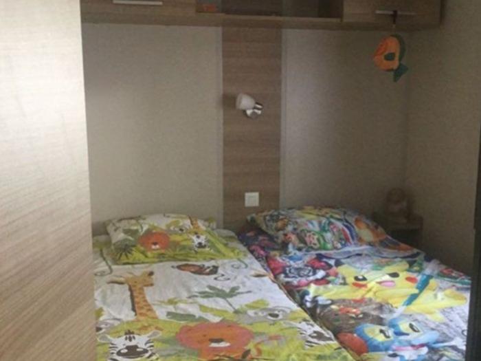 Le Grand Village Plage (17) : (Ile d'Oléron) A vendre mobil home Rapidhome Élite, de 3 pièces, d'une surface de 36 m² (9x4), situé dans un camping 4 étoiles, avec son lagon et sa plage de sable fin. Un mobil home tout confort, climatisé, et entièrement équipé, suivant l'inventaire du camping. Il comprend notamment :