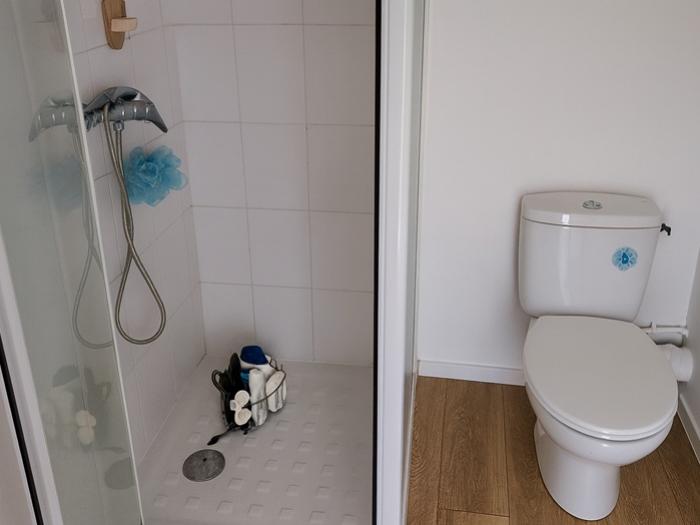 Une pièce principale lumineuse, une kitchenette (meuble à remplacer) et une salle d'eau.
