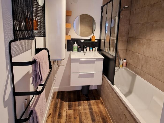 - Une salle de bain avec baignoire