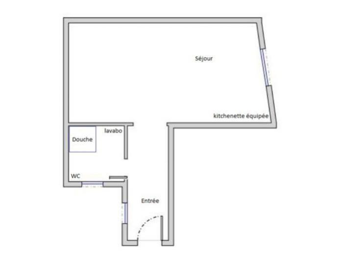 - Une salle d’eau avec lavabo, WC et petite fenêtre